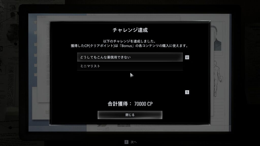 本作はストーリーをクリアした後も、バイオシリーズお馴染みの「やり込み要素」がたっぷり用意されています。筆者も攻略動画を参考にしつつ、以下の縛り実績を無事にクリアしました!