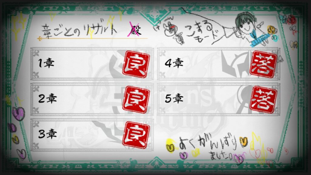 フミさんの配信含め、最終章まで配信許可がされるのがかなり先になりそうなのが残念ですが、ダンガンロンパの世界観の異常さを改めて実感できる作品でした。コロシアイのように被害が管理されている状況よりも、もっと無秩序に人が死んでいく世界が描かれており、悪趣味ながら非常によくできた外伝だと思います。操作感や探索面に課題はあるものの、ダンガンロンパ好きとしては十分に楽しめました。
